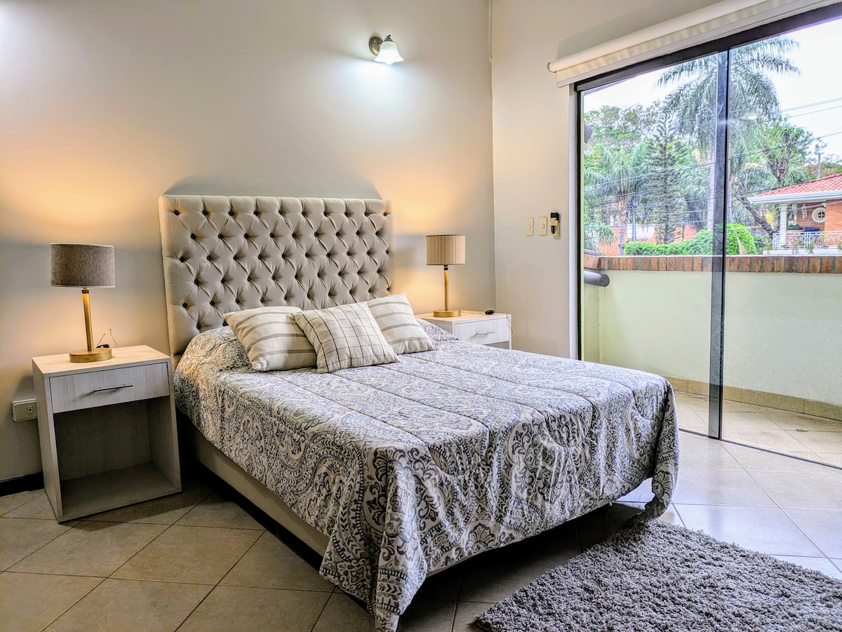 Vrhunska lokacija: V bližini jahte, Cerro Lambaré in Costanera Sur. Le 10 minut od stadiona La Nueva Olla. 15 min od središča Asuncióna. 30 minut od glavnih nakupovalnih središč v državi. Oprema: Prostoren, svetel in klimatiziran prostor, opremljena kuhinja, Wi-Fi, pametna TV in udoben prostor za sedenje Idealno okolje za počitek in odklop Idealno za: Popotniki, ki iščejo mir, dobro lokacijo in enostaven dostop do glavnih točk mesta.