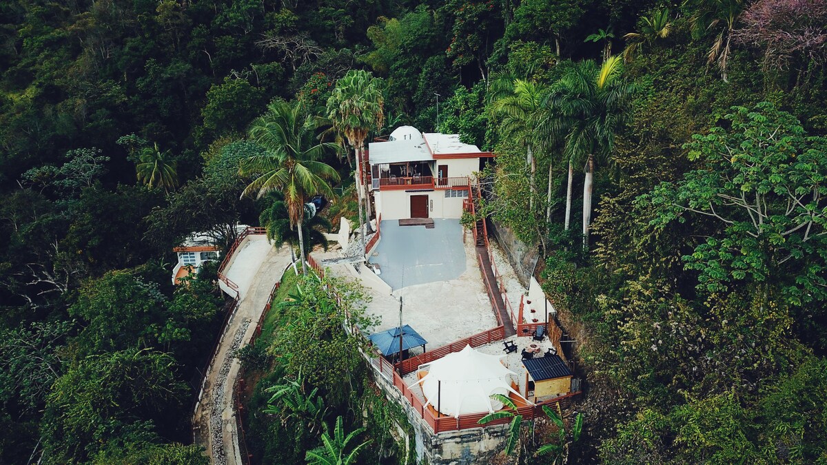 Sprostite se in odklopite v tem resnično edinstvenem in mirnem oddihu. Ta čudovita zasebna hiška na deželi za pare, ki se nahaja v mestu Adjuntas, ima osupljiv naravni bazen, zasebni slap, zelene strehe, sproščujočo masažno kad (ogrevano na drva) in ekskluziven dostop do reke Tanama. Z več kot miljo poti, ki vam bodo razbistrile misli, obljublja, da bo odlično za vaše pohodništvo, plavanje, raziskovanje in uživanje v naravi!