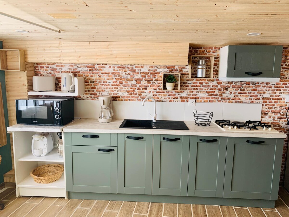 Pridite in se sprostite v tej čudoviti hiški na deželi z očarljivim in najbolj mirnim okoljem . Ta namestitev ponuja: sodobno in opremljeno kuhinjo (hladilnik, keramična kuhalna plošča, mikrovalovna pečica, aparat za kavo Senseo, grelnik vode,...) , delovni / jedilni prostor in kokoning salon. Zgoraj boste imeli spalnico in čudovito svetlo prho s prho. Prijeten vrt z žarom, ki vam je na voljo. Wi-Fi (Fiber) in Smart TV z shranjenim računom Netflix.