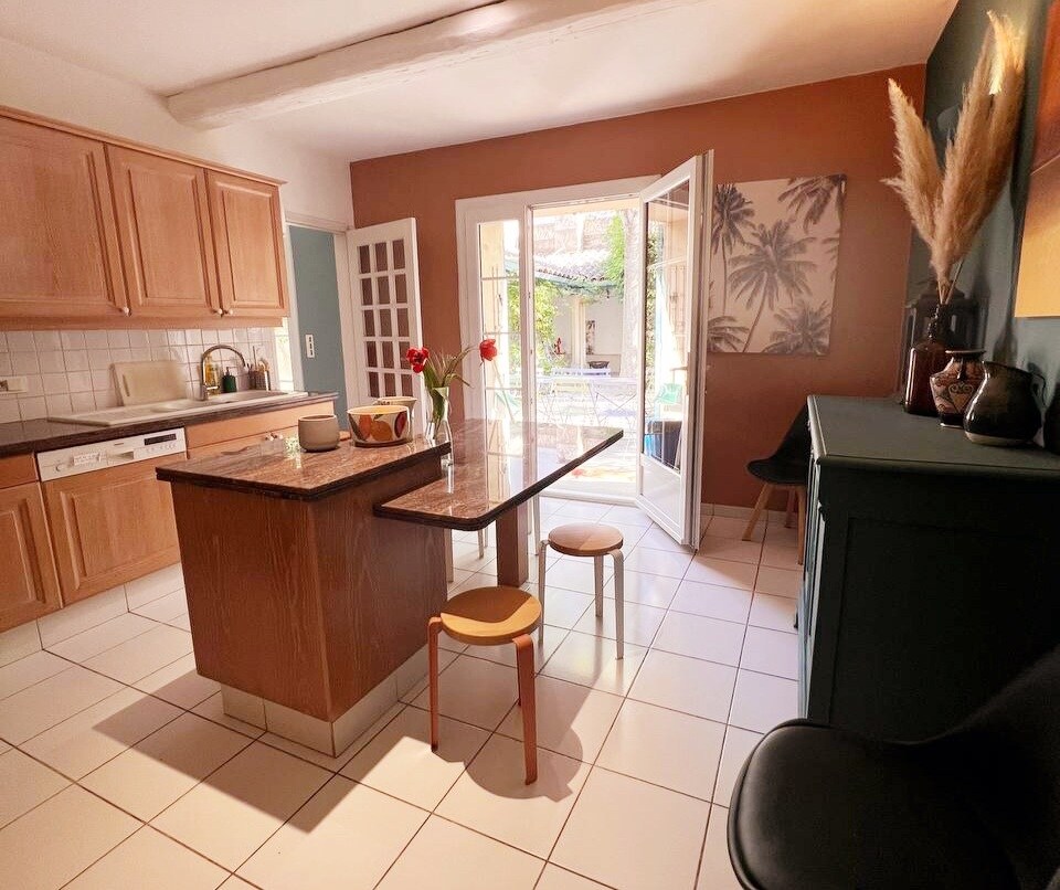 Cozy, spacious Provencal villa with swimming pool and pool house. The house is right next to a nature reserve in a picturesque area. Ground floor: spacious dining room with fully fitted large kitchen and access to terrace, equipped with BBQ. A cozy living room with a double fireplace, from which you have a view of the swimming pool. There is also a bedroom with a double bed, bathroom and laundry room. Upper floor: two bedrooms (one double bed and one with two beds) and a bathroom.