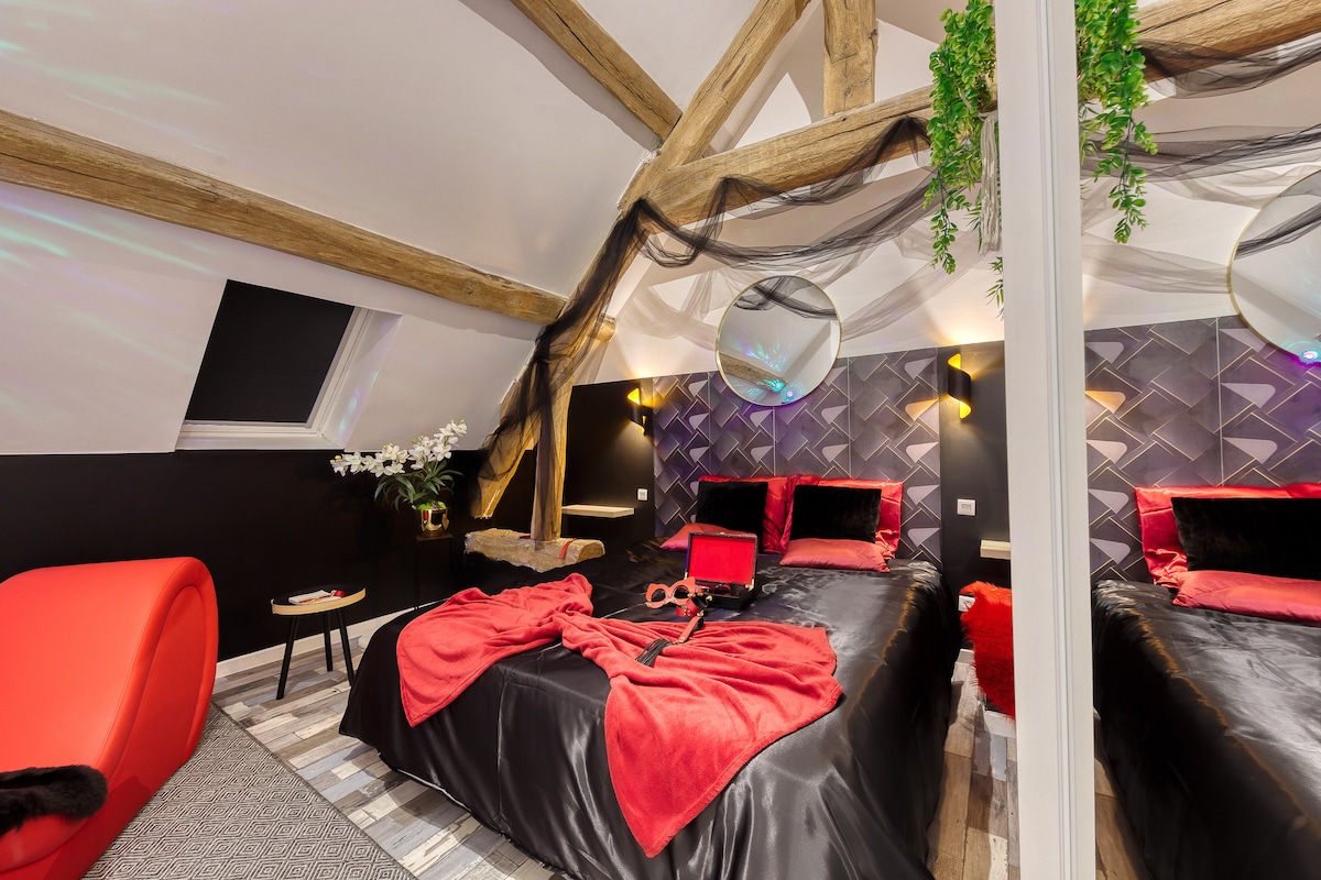 🖤 Dobrodošli v Črnem apartmaju Apartma z elegantnim in očarljivim dizajnom, zasnovan za pare, ki iščejo brezčasen trenutek. To popolnoma prenovljeno stanovanje, ki se nahaja le 5 minut od pariškega Disneylanda, vas bo popeljalo v elegantno, intimno in prefinjeno vzdušje, ki je kot nalašč za romantični oddih. Ne glede na to, ali gre za poseben večer, presenečenje ali pa samo za sproščujoč čas v dvoje, apartma Black Suite obljublja edinstveno izkušnjo.