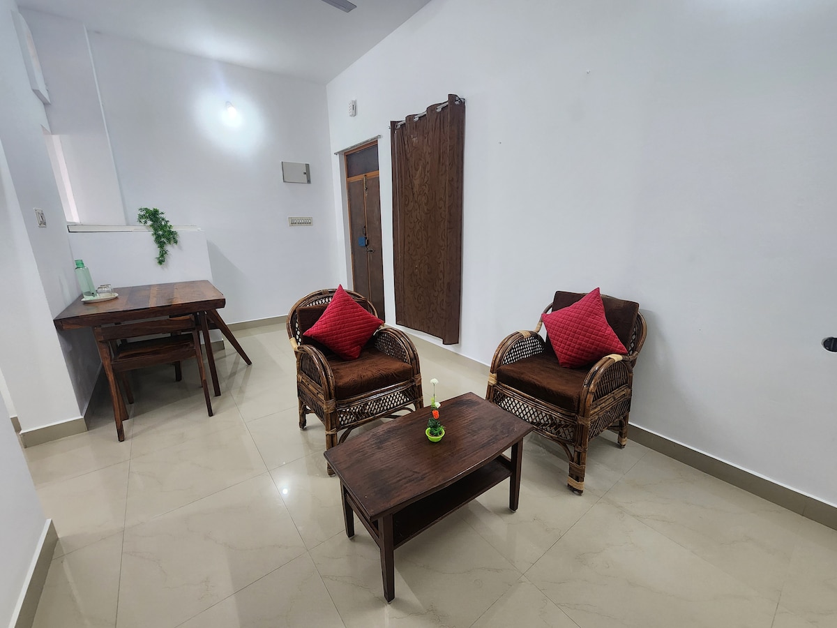 Dobrodošli v naši čudoviti mirni hiši 3BHK v prvem nadstropju, ki se nahaja v mirnem stanovanjskem predelu v bližini železniške postaje in zelo blizu glavnega mesta in nakupovalnih območij. Naše dobro opremljeno prenočišče je kot nalašč za družine 6 oseb. Naša hiša je zelo blizu Rock Beacha in belega mesta. Obožuje g. Karthik, ki vodi tudi potovalno agencijo za letalske vozovnice. Potovalne objekte lahko ponudimo z doplačilom. Lastnik biva v pritličju. Ne nudimo storitev portirja. Storitev sobarice je na voljo brezplačno.