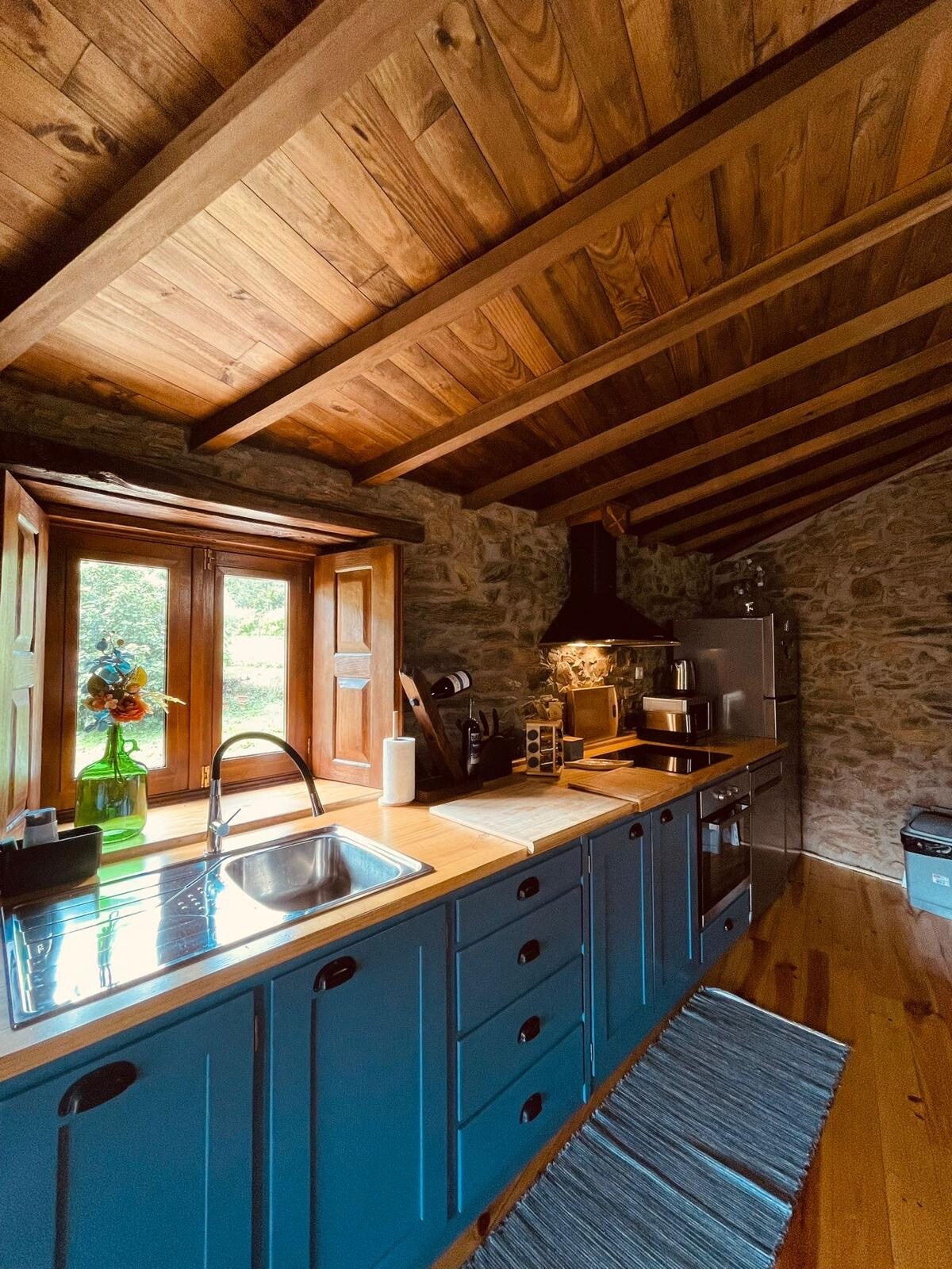 Obnovljena hiša z vsem udobjem, ki ga potrebujete za čudovit oddih in/ali druženje z družino in prijatelji. Ta hiša se nahaja v stari zapuščeni vasi ob reki s čudovito majhno plažo. Če uživate v stiku z naravo, je to idealen kraj za vas. Tukaj lahko srečate vidre, številne vrste ptic in še veliko več. Hiša ima dve spalnici, kopalnico, popolnoma opremljeno kuhinjo in klimatsko napravo. Bazen si deli z drugo hišo. Obroki so na voljo na zahtevo.