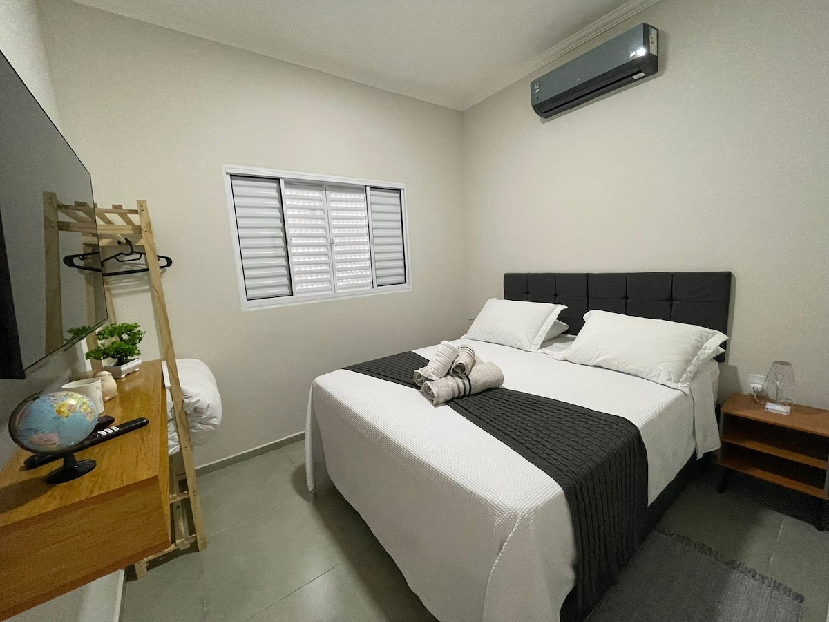 Hiša na odlični lokaciji v bližini supermarketa, pekarne, lekarne, trgovin, bivališča z enostavnim dostopom do avtoceste, industrijskega okrožja. Unesp College Atacadao iz ekskluzivne garaže Spani. Casa Zelo udobna, varna, neodvisen vhod, pralnica (rezervoar, rezervoar in oblačila ) kuhinja (hladilnik, kuhalna plošča, mikrovalovna pečica, miza s stoli), kopalnica (električna prha), spalnica (garderobna omara, postelja in ventilator ), pametna televizija v dnevni sobi in tudi v spalnici!! z Wi-Fi-jem in velikim dvoriščem.