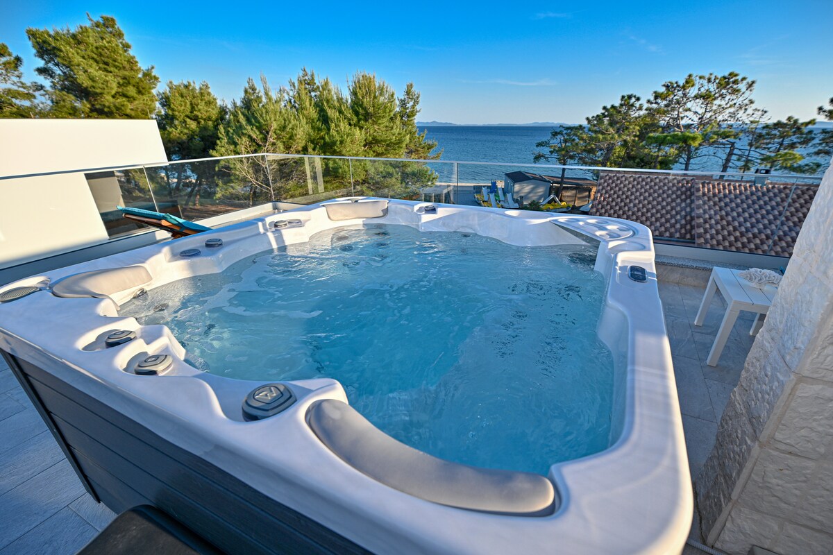 Vila na morju z masažno kadjo in ogrevanim bazenom
