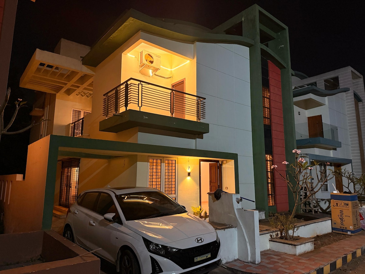 Uživajte v počitnicah v tem edinstvenem in mirnem prenočišču, ki je oddaljeno 5 minut vožnje do plaže. Idealen kraj za družinske počitnice ali delo od doma v mirnem in zelenem okolju. 3 ločene dvoposteljne sobe v 700 kvadratnih jardih zelenja. Nahaja se v središču mesta, v bližini (100 metrov od) križišča Hanumantha vaka. Do bankomatov, restavracij in Kailasagirija se lahko sprehodite peš.