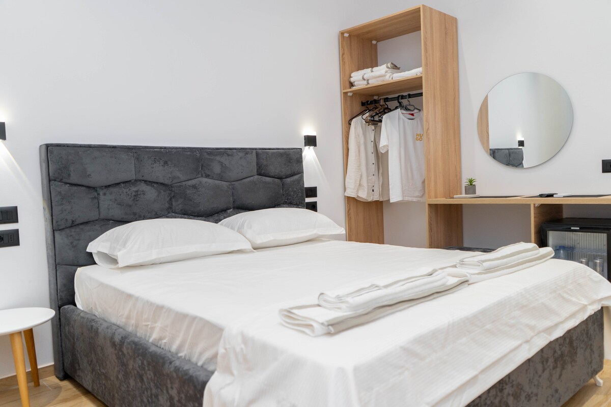 Wake up to stunning sea views in the heart of Vlora's vibrant Lungomare promenade! Our bright and modern seaview rooms are just steps away from the beach, restaurants, bars, and everything you need for a relax. Enjoy your morning coffee on the balcony overlooking the Ionian Sea, or take a sunset stroll along the promenade. Each room features a comfortable bed, air conditioning, fast Wi-Fi, and a private bathroom—perfect for couples, solo travelers, or digital nomads looking to unwind by the sea.
