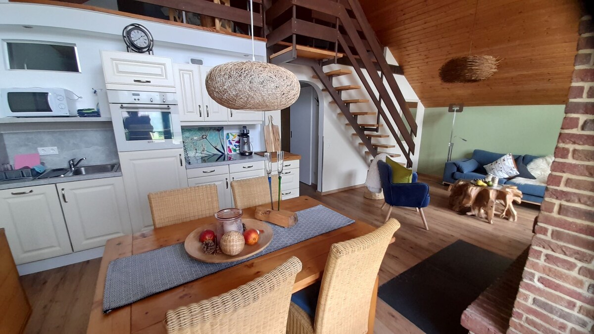 Welcome to Kummerfrei – where you enjoy a carefree holiday! Time passes more slowly, your heart beats more calmly, and smiles come to you. Whether you're walking barefoot through the grass, enjoying your coffee in the greenery, or wrapping yourself in a blanket on the balcony: Here is your sanctuary to breathe and recharge. The house combines a cozy countrystyle – lovingly furnished, spacious, and with all the comforts you could wish for on holiday. Kummerfrei isn't a place, it's a feeling.