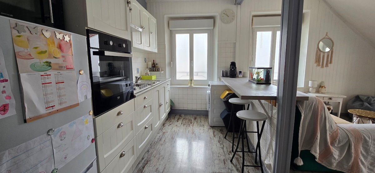 Mestna hiša (75m²), samostojen vhod v zelo mirnem območju in v bližini vseh trgovin (2min), idealno se nahaja na križišču številnih mestih zgodovinskega pomena in prostega časa: - 5 min iz vodnega centra AQUABAR - 10 min iz zabaviščnega parka Nigloland - 10 min iz Cellier aux Monnes - 15 min od Cistercian kleti Champagne Drappier - 15 min od Charles de Gaulle Memorial - 15 min od samostana Clairvaux - 20 min od jezer , in od pristanišča Dienville