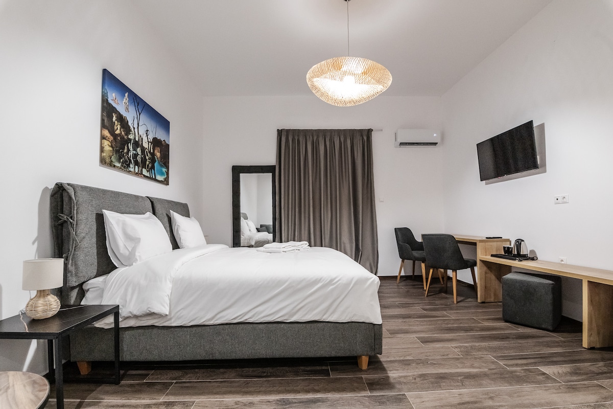 Gre za novo stanovanje, ki je usmerjeno v udobje gostov in je idealno za pare in profesionalce. Nahaja se v središču mesta, s pogledom na morje in Pelion. Nahaja se le 1 minuto od plaže, 3 minute od pomola pristanišča in 2 minuti od Ermouja.