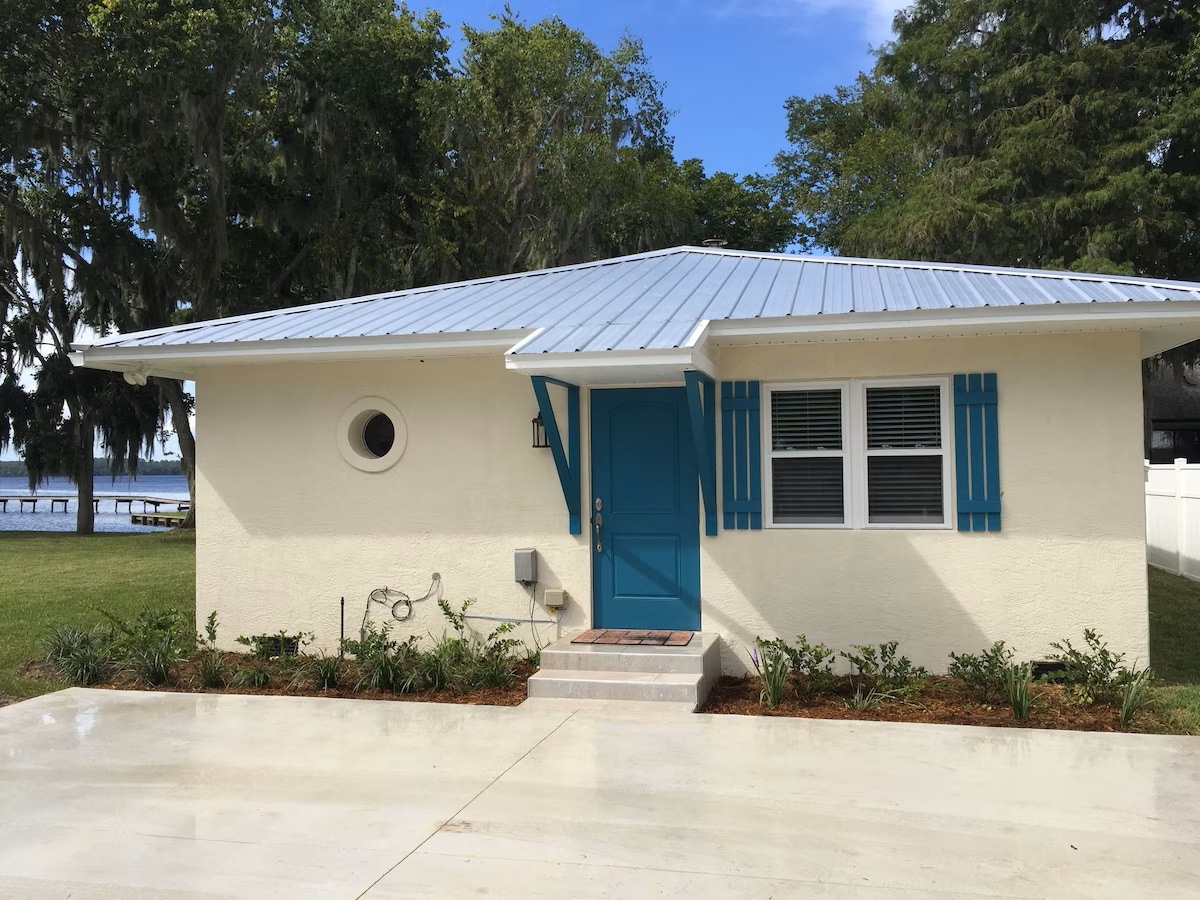 Zen Lake Front Cutie se združuje s prostoživečimi živalmi! Uživajte v izvrstnih sončnih zahodih, medtem ko se sproščate na terasi ali v terapevtski masažni kadi. Užitek zvezd, raj za opazovalce ptic. Zen in eklektično: izvirna umetnost, eksotična dekoracija, zen razsvetljava in indonezijski les. Le skok od I4, 30 minut od plaže New Smyrna, 40 minut od Orlanda, 50 minut od letališča MCO/Disney/Sea World. 5-10 minut od naravnega Blue Springsa, Green Springsa, Gemini Springsa in legendarne reke St. John 's.