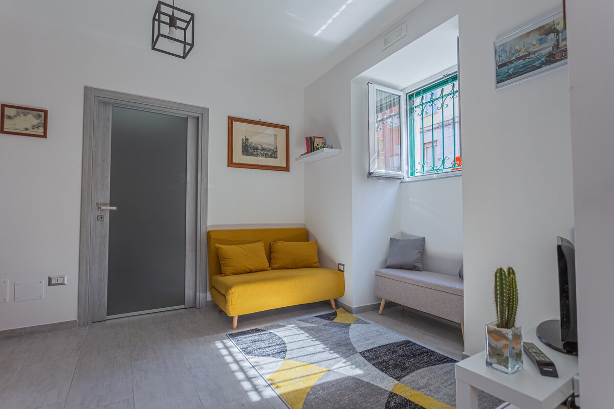 MIRANDA apartments è composto da due mini appartamenti dotati di aria condizionata, separati e indipendenti I due mini appartamenti "Bijou" e Joli" hanno solo l' ingresso in comune dove è possibile lasciare valigie per il check in/out ed una stanza lavanderia GRATIS con: lavatrice, asse da stiro e stendi panni. Nell’ ingresso ci sono quindi due porte per accedere ai due appartamenti indipendenti L’appartamento Bijou ha un soggiorno cucina con ampio bagno, la scala porta ad un soppalco ( altezza 1,81 m) con due camere da letto matrimoniali in una delle quali c’è anche un letto singolo. Può ospitare quindi fino a 5 ospiti. L’appartamento Bijou ha aria condizionata ed un piccolo balcone dove è consentito fumare. L'appartamento è su due livelli. Nella zona giorno, c'è un soggiorno con cucina e bagno. Nella zona soppalcata le due camere da letto Miranda Apartment si compone di due appartamenti completamenti indipendenti: Bijou che può ospitare un massimo di 5 ospiti e Joli che ne può ospitare 3 Offro ai miei ospiti la massima riservatezza, ma sono sempre disponibili e disponibili per qualsiasi necessità o per dare qualche buon consiglio. Bijou apartment is located in Vomero In the near pedestrian area is possible to walk peacefully through the shopping streets with patisseries, pizzerias and typical restaurants. In 5 minutes by walk there is a Carrefour supermarket. In few steps from the apartment there are Metro 1 and three different funiculars connecting any district of the city. In the apartment you will find an information book with many details to reach the touristic destinations (Pompei, Capri.....) Sarà facile raggiungere l'appartamento sia che arriviate dall'aeroporto di Capodichino con Linea Alibus e Metro 1, sia che arriviate dalla stazione ferroviaria centrale di Piazza Garibaldi con Metro Line 1 - Vanvitelli. Alla prenotazione sarà mia cura fornire tutte le informazioni dettagliate per arrivare senza intoppi. Bijou è un appartamento con due camere da letto. Nelle due camere da letto, situate al piano superiore, l'altezza è di circa 1,83m Miranda Apartament è un appartamento con due camere da letto. Nelle due camere da letto, situate al piano superiore, l'altezza è di circa 1,83m Miranda Apartment si compone di due appartamenti completamenti indipendenti: Bijou che può ospitare un massimo di 4 ospiti e Joli che ne può ospitare 3