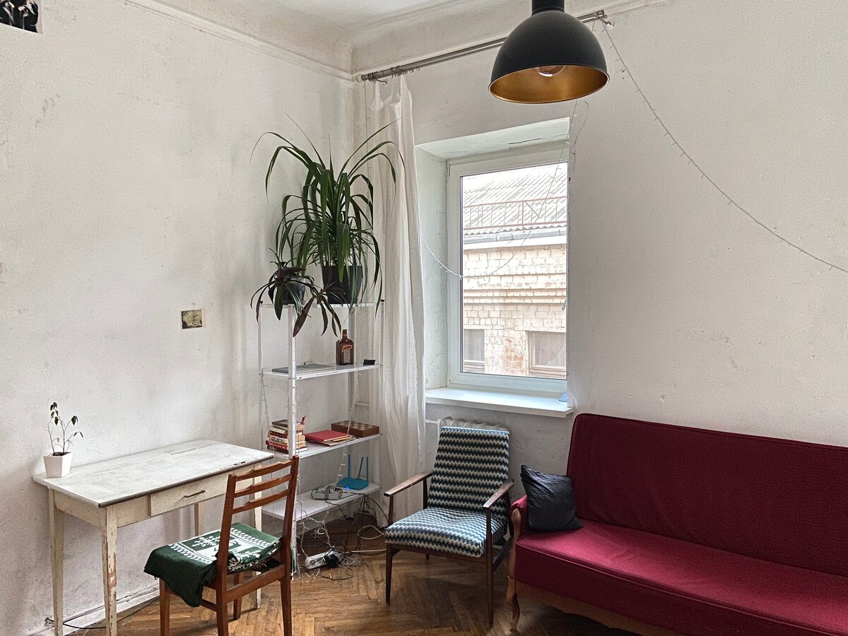 Stanovanje je sodobna prenova, ki se nahaja v zgodovinskem okrožju Podil v središču Kijeva v drugem nadstropju petnadstropne stavbe. Balkon gleda na mirno dvorišče. Velika kopalnica.