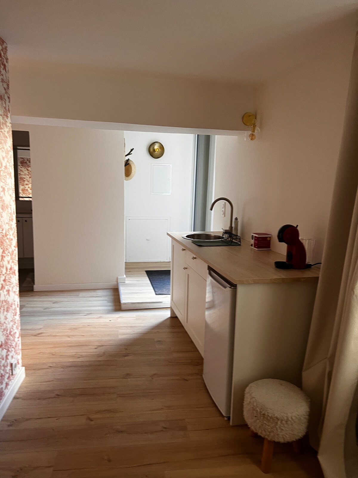 Ce joli studio chaleureux, fonctionnel et bien agencé a été rénové dans un esprit déco tendance. Un coin nuit agréable, séparé d'une verrière, surplombe le séjour et la cuisine. Il est situé dans une arrière cours très calme au rez-de-chaussée. Sa localisation idéale au centre d'Oullins, au pieds des commodités vous séduira. Il se trouve à 150m de la gare d’Oullins, du métro, des lignes de bus qui desservent Lyon et le sud-ouest Lyonnais. En voiture, l'accès à l'autoroute A7 se fait en 5 min.