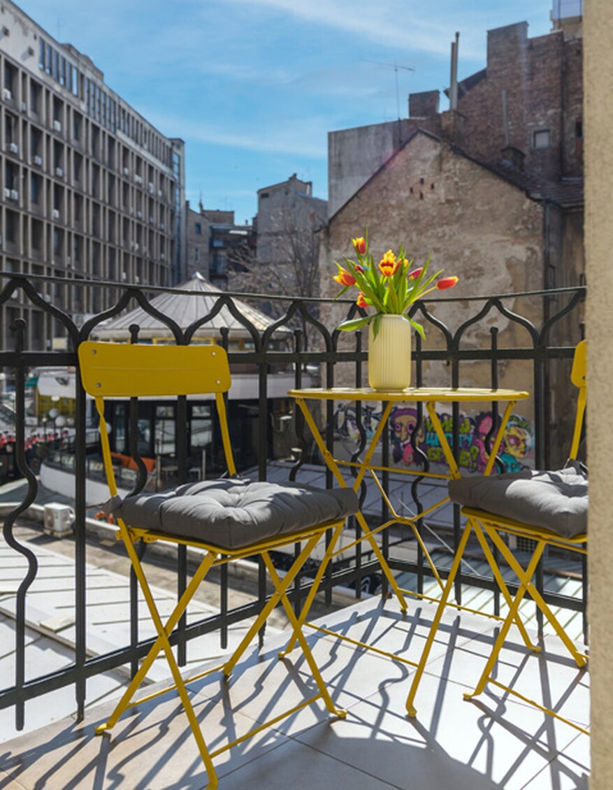 📍 LOKACIJA – 50 m od Knez Mihailove, glavne beograjske ulice za pešce. 🏠 O NAM – Eleganten 65 kvadratnih metrov velik dvoetažni apartma za 4 goste (+ otroška posteljica). Pritličje: odprt dnevni prostor s kuhinjo, jedilnico, kavčem, televizijo in kopalnico s prho. Predelano stanovanje: udobna spalnica z veliko zakonsko posteljo, omarami, televizorjem. 🌿 PRIJETNO – zunanji prostor za sedenje – redka najdba v središču mesta, kot nalašč za jutranjo kavo ali večerni kozarec vina. 🤝 GOSTOLJUBJE – vedno v bližini, da pomagamo. ✨ ČE … želite mir in udobje v osrčju Beograda. 😊 DOBRODOŠLI