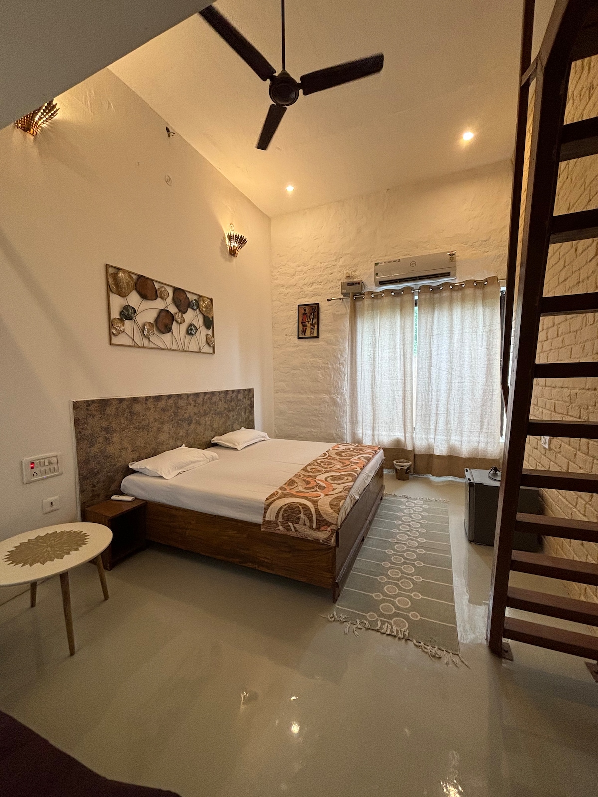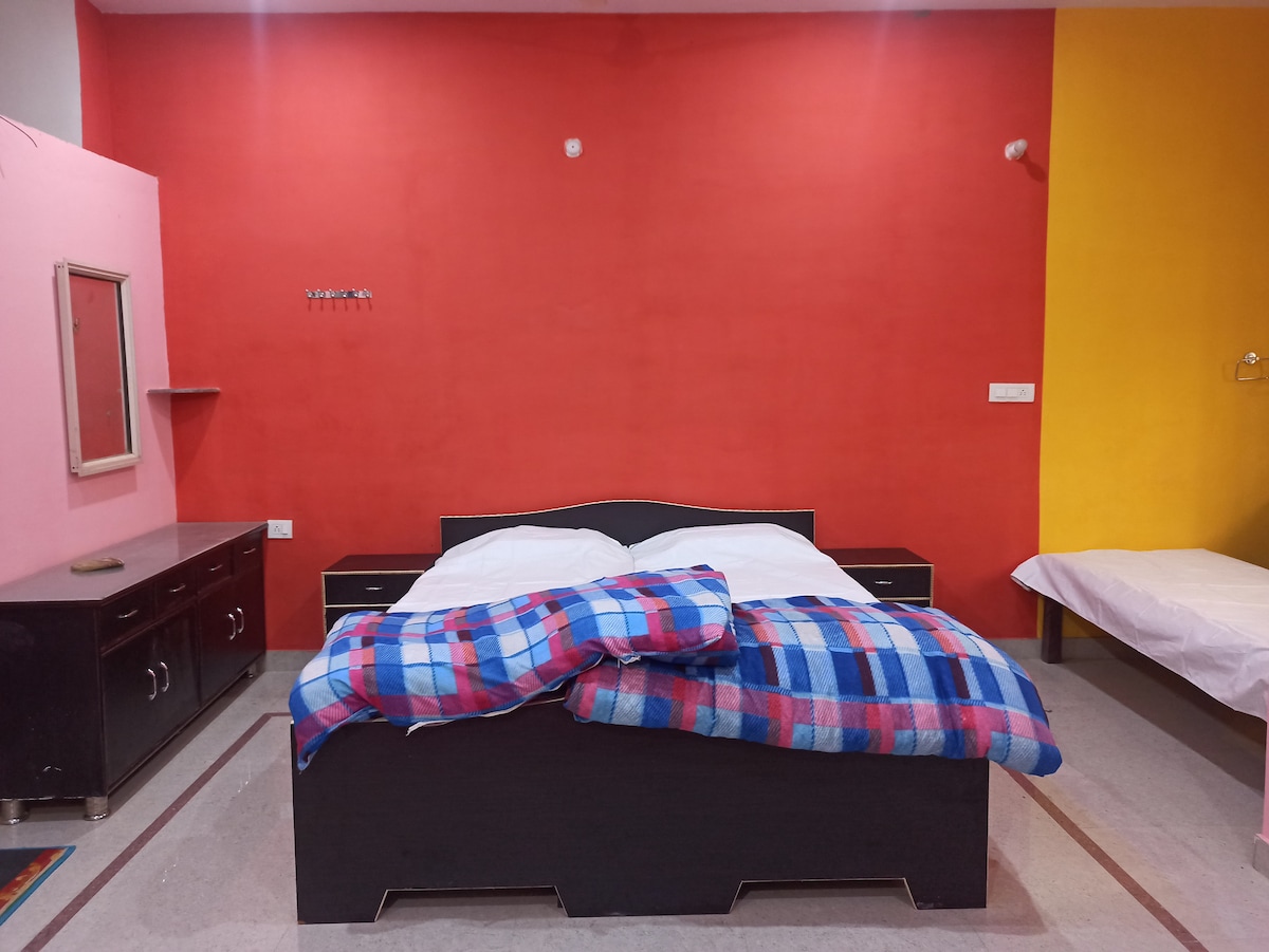 Bivajte v Bhakti Vanamu, le 1,5 km od svetega Prem Mandirja v Vrindavanu. Uživajte v prostornem garsonjeri s klimatsko napravo, hitrim Wi-Fi-jem, zasebnim vhodom in udobnim balkonom. Idealno za dva gosta, po potrebi pa je na voljo dodatno ležišče. Lahko se dogovorite za priročne templje in javni prevoz ter prenočišča s skuterji. Popoln dostop do dobro opremljene kuhinje in čiste kopalnice. Idealno za družine ali samostojne popotnike, ki iščejo udobje in mir v duhovnem kraju.