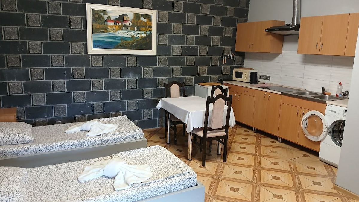 Коли хочеться втекти від міської метушні, відчути справжню єдність з природою, чудово провести час усією сім’єю, обирайте наш дерев’яний котедж. В ньому є все необхідне для комфортного проживання: дві спальні, wi-fi, телевізор, ванна кімната, кондиціонер, міні-кухня з обідньою залою та тераса, де відкривається неймовірний вид на гори.