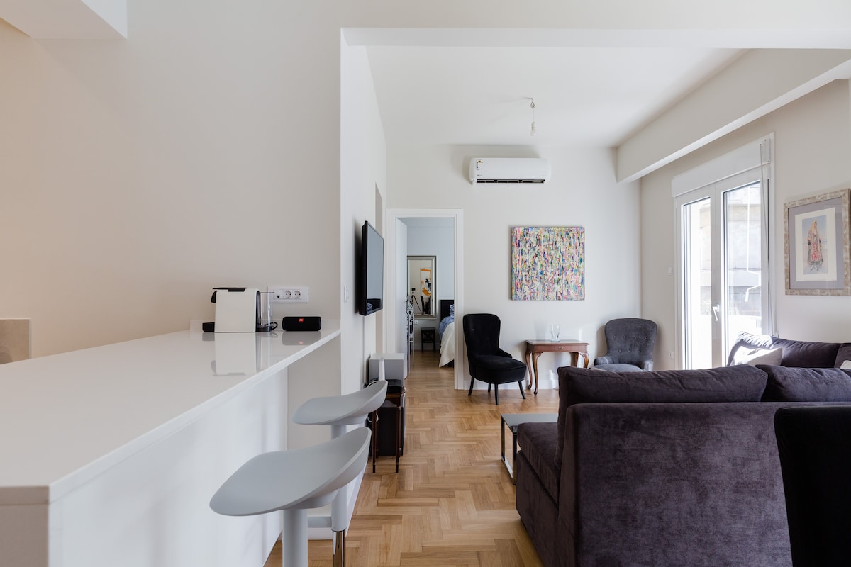Feel right at home in this renovated, sun-filled apartment in Pagrati (4th floor). A cozy retreat that combines local vibes with modern comfort. Highlights: 🚀 500 Mbps Wi-Fi: Fast fiber optic, perfect for digital nomads. 🛏️ Supreme Comfort: 2 King beds with premium quality mattresses for a restful sleep. 🏙️ View: Balcony with open city views, near the Stadium. Fully equipped so you won't miss a thing. The perfect "home away from home" for travelers seeking quality and relaxation.