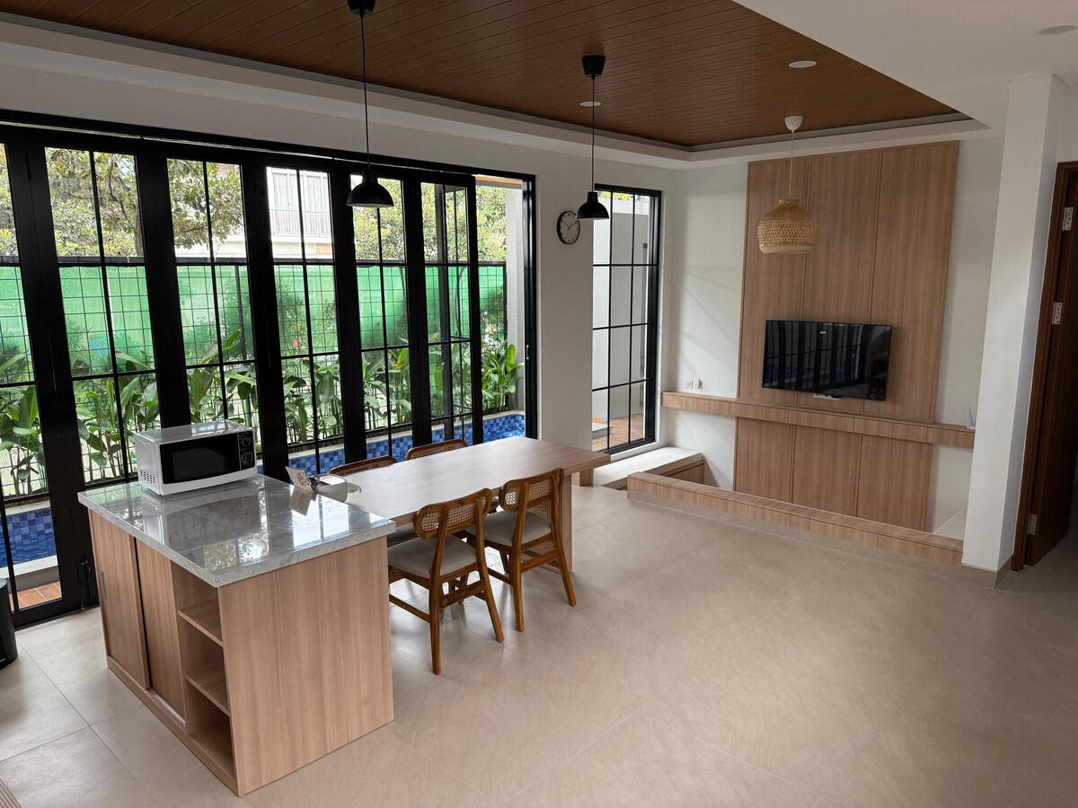 🌟Fanawa Family Villa at KBP 🌟 Experience timeless elegance and modern comfort in the serene neighborhood of Kota Baru Parahyangan at Tatar Punawangi. Blending tropical décor with modern style, this villa is perfect for a family getaway. Enjoy spacious living areas, a vibrant children's playground and comfortably styled spaces that create a sense of elegant and joyful. Perfect for families, friends and big groups. Check our Profile for 1–4 BR units and lux villas across Bandung