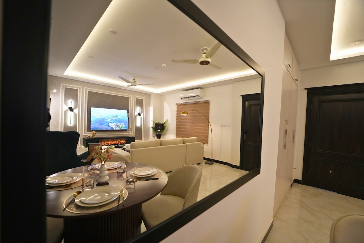 Stopite v 3-sobna stanovanja Flamingo Grand Grand, najbolj prefinjena in estetsko razburljiva storitvena stanovanja v Islamabadu. Uživajte v varnem, varnem in elegantnem doživetju v tem bivališču, ki se nahaja v središču mesta. Ne glede na to, ali ste na obisku zaradi užitka ali dela, vam želimo zagotoviti izkušnjo s 5 zvezdicami. Gostje uživajo tudi v posebnem brezplačnem in varnem parkirnem mestu, brezplačnem omrežju Wi-Fi in doživetju, kjer si ogledujejo svoje najljubše televizijske serije na 65-palčnem pametnem LED.