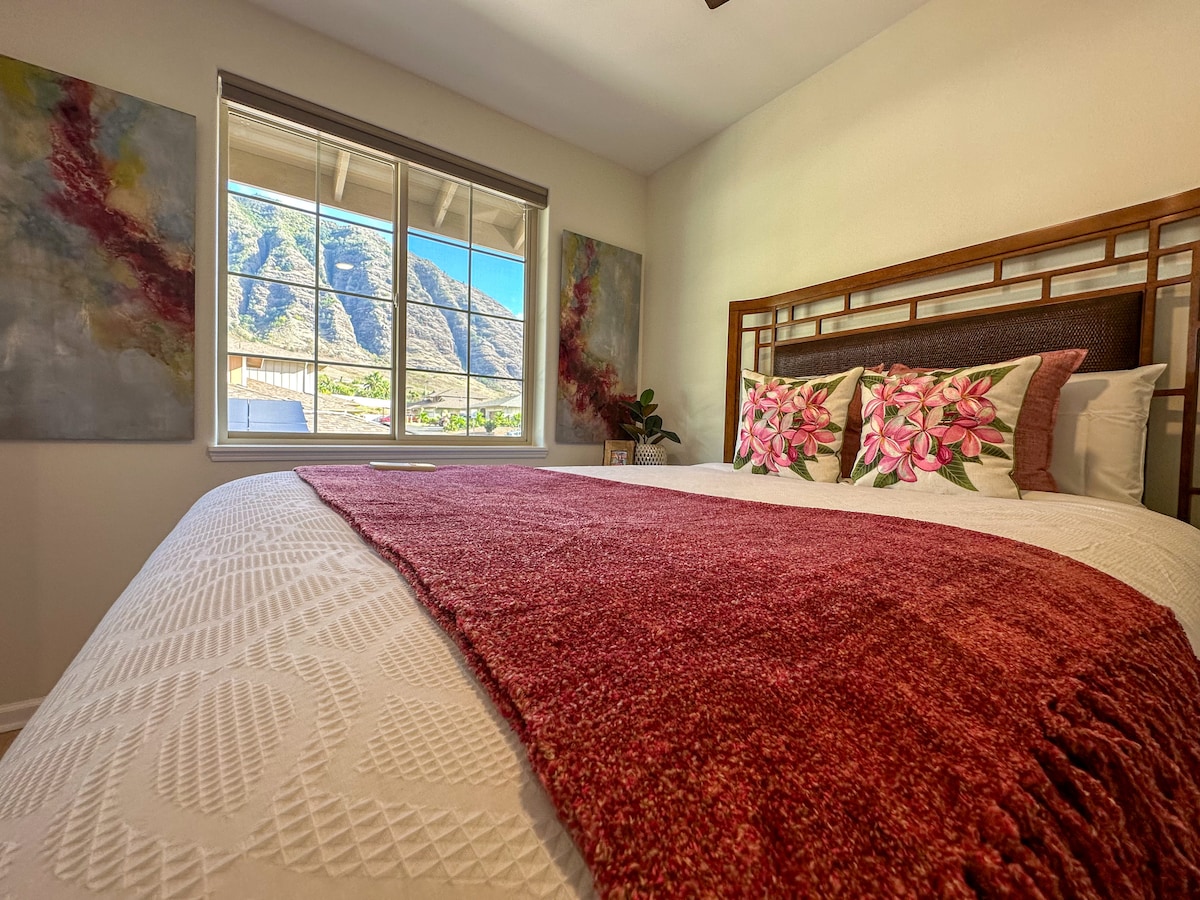 Escape to the beautiful Makaha Valley in Hawaii and experience a truly unforgettable stay at our 3-bed 2.5-bath house. This enchanting Airbnb, nestled within a secure gated community offers a getaway for those seeking tranquility amidst the breathtaking beauty of the island. Enjoy breathtaking views of the Makaha Valley mountainside, modern amenities, and a serene ambiance. Indulge in nearby pristine beaches and immerse yourself in the beauty of the island. Your dream Hawaiian getaway awaits!