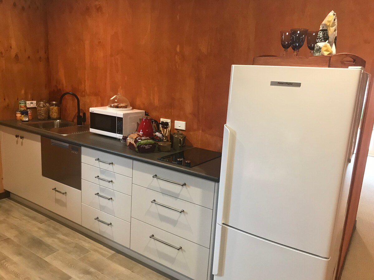 Sprostite se v tem edinstvenem in mirnem oddihu na podeželju. Usedite se na teraso s kozarcem vina, uživajte v razgledu in pustite, da se svet stopi. Ta sodobna dvosobna koča je popolnoma samostojna in ločena od glavne hiše z vsem, kar potrebujete za sprostitev. 45 minut od letališča Auckland, ki se nahaja na pol poti med Aucklandom in Hamilton CBD, okoliško okrožje ponuja osupljive naravne sprehode, deskarske plaže, adrenalinske pustolovščine, vinograde in fine restavracije.