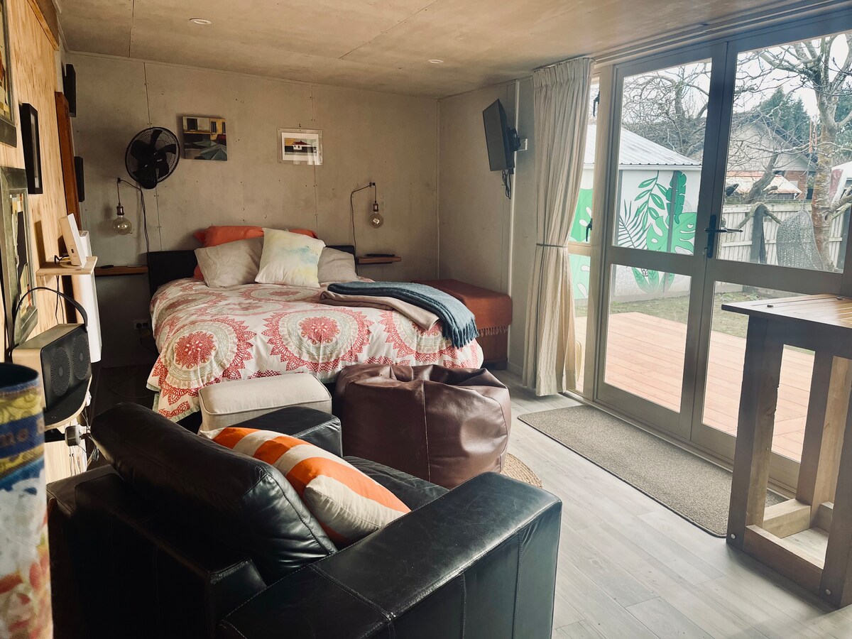 Ločeno krilo hiše, zakonska postelja, kopalna prha, zasebna dnevna soba z gorilnikom na drva; idealno se nahaja v North Canterburyju v bližini vinorodne regije Waipara. 45 min. Letališče Christchurch Enostaven sprehod do mesta Amberley s trgovinami in kavarnami 20 min. vožnje do Rangiore. Vinske kleti Waipara v 15 minutah vožnje, restavracije + kavarne. 60 min do Hanmer Springsa, vročih bazenov in hoje. Kratek sprehod do domene Amberley. Opomba: kajenje in hišni ljubljenčki niso dovoljeni. Ni primerno za otroke, mlajše od 12 let.