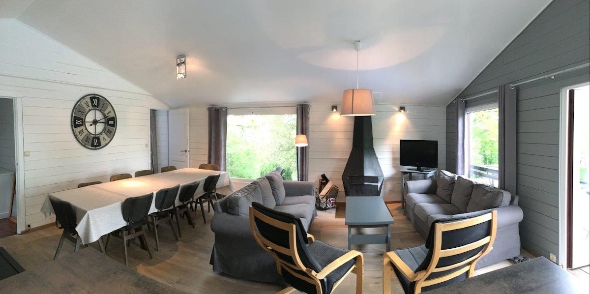 PROSTORNA IN SVETLA PLANINSKA KOČA Z VELIKO TERASO S PERGOLO Pridite in odkrijte naš HAL 'heureux na robu gozda in uživajte v izjemnih razgledih Idealno mesto: Malmedy center 15 min hoje - vezje Francorchamps 11 km, jezero Robertville 8 km stran Kuhinja, bivalni prostor s štedilnikom na pelete, TV,NETFLIX Kopalnica z italijansko prho 3 spalnice, vključno z 1 v pritličju Igrišče Petanque je vključeno Brezplačno parkiranje Ob koncu bivanja dodatno in obvezno