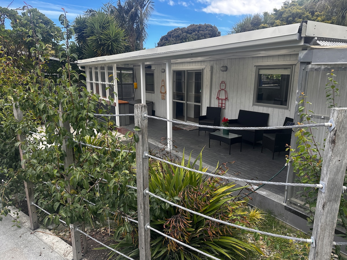 Sodobna 7 let stara enosobna hiša za goste. Ločen bivalni prostor in kuhinja, kopalnica s prho in straniščem. Povezana je z glavno družinsko hišo, vendar je ločena z dvema garažama, ki zagotavljata zasebnost. Prostor je primeren za par, ki si želi mirnega oddiha z ločenim vhodom v družinski dom. 1 min hoje do 1 od najboljših deskarskih plaž in kratke vožnje do drugih čudovitih plaž/deskarskih počitnic in mesta Gisborne.