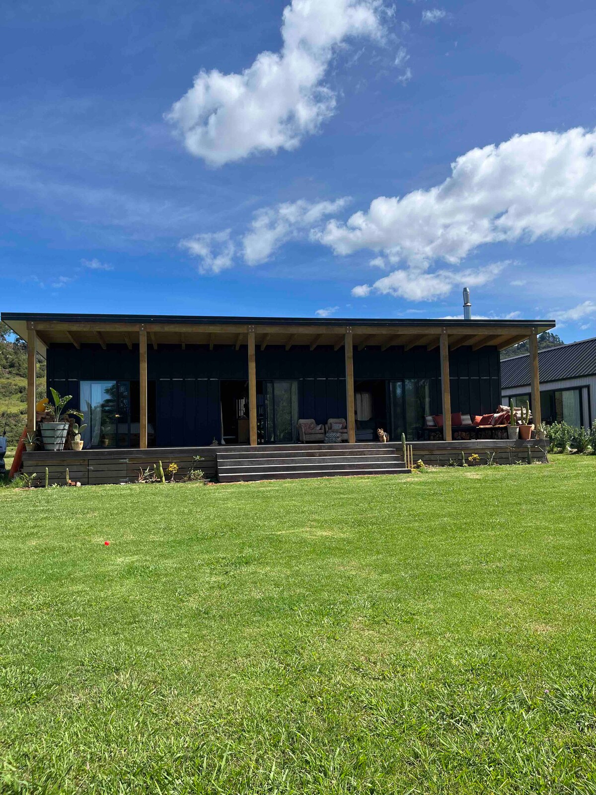 5 Mins drive to township, and swimming beach. This new architecturally designed house is set in a peaceful location. Wake up to the sounds of the Tui, and Bellbirds. Large Deck surrounds three sides of the house. Boat ramps nearby, Long Bay, Coromandel boat ramp (short drive away.) Plenty of parking. Numerous walks nearby, Kauri Track, Harray track. Explore the old Gold mining town of Coromandel. Fishing, Kayaking, the famous driving creek railway. Nine hole Golf Course nearby.