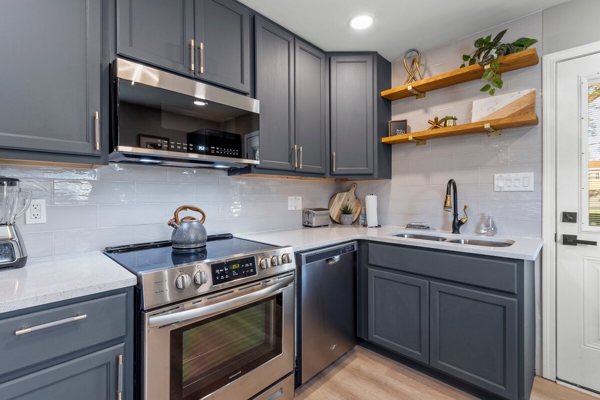 Elegantno in na novo prenovljeno prenočišče v mirni soseski ~ peš do trgovine Brookside in okrožja Person St. Obljublja sproščujoč oddih na odlični lokaciji, manj kot 5 minut stran od središča mesta - osrednjega pomena za vse, kar ponuja Raleigh. Seznam opreme bo poskrbel za udobno bivanje: - Udobna postelja - Popolnoma opremljena kuhinja z razkošnim štedilnikom - Pametni televizorji v vsaki sobi -Zasebni zunanji prostor za zabavo