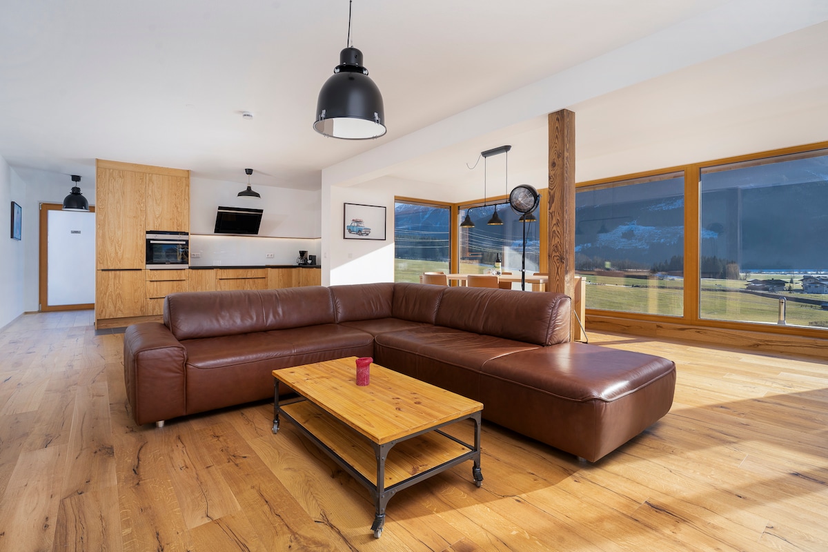 ZALJUBITE SE V prvi pogled! (Instagram: apartment_wide view) Ponujamo vam čudovito gorsko panoramo in neovirano zelenje, tik pred vašimi očmi. Mirna lokacija vam omogoča vse, kar potrebujete, da se izognete stresu vsakdanjega življenja in se optimalno sprostite. Avtobusni avtobus je oddaljen približno 100 metrov in Železniška postaja zagotavlja popolno povezavo za okoliška smučišča , slapove Krimml ali kristalno kopel!