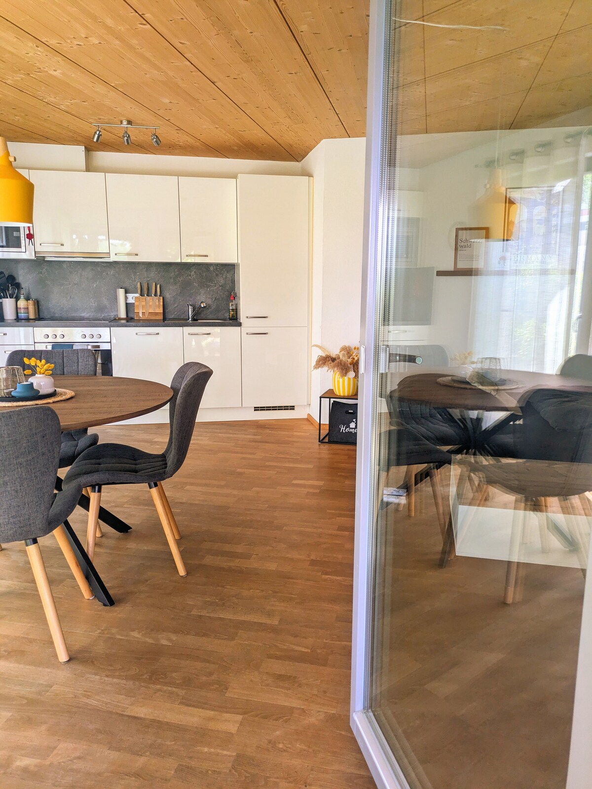 Naše stanovanje je približno 73 m² in se nahaja v pritličju z ločenim vhodom. Je ljubeče opremljen in lahko sprejme 4 osebe. Kuhinja, sodobna kopalnica, jedilnica, odlična spalnica in celo zabavna igra za vse starosti za vse starosti… Uživajte v elegantnem doživetju v tej osrednji, a mirni nastanitvi v čudovitem južnem črnem gozdu. Veselimo se srečanja z vami.