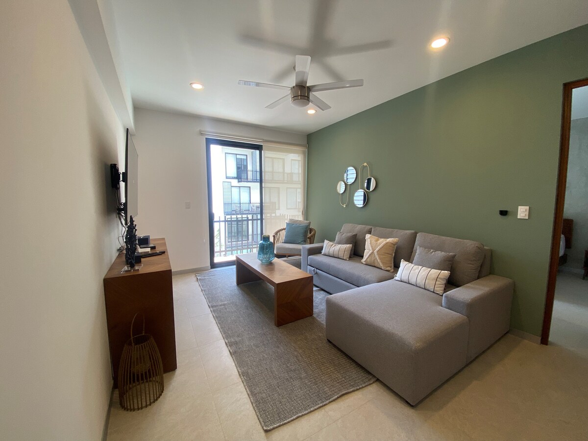 ASK FOR DISCOUNT! I have an offer for you. Pools with heater NEW Playroom, SPA, sream room now open. Free parking. Services included. The largest in building 68m2 (732ft2) 1 bedroom apartment excellent for vacation or work with amenities. Ask promo with bikes, GYM, Cinema, inside coffee shop, 5 min to restaurants in la Quinta Avenida and the beautiful beach. Chichén itza ruins, Tulum, Xcaret, Cozumel Do remote working or splash in our 2 swimming pools, watch the sunset with drinks at rooftop