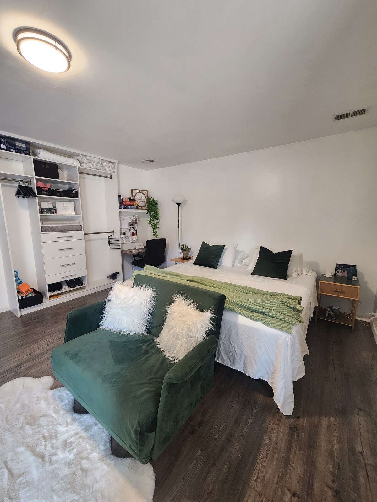 OPOMBA: izboljšani koraki pri globinem čiščenju in razkuževanju se uporabljajo v naših postopkih čiščenja, ki jih priporoča Airbnb. Zdravje in varnost naše družine in gostov sta za nas pomembna. Obisk družine, poslovno potovanje ali pa potrebujete miren oddih? To je celotna suita za goste z zasebnim vhodom, opremljenim s pralnim in sušilnim strojem, veliko kopalnico, prostorno spalnico z zakonsko posteljo, udobnim bivalnim prostorom s kavčem za spanje, pametno televizijo in popolnoma opremljeno majhno kuhinjo, opremljeno za kuhanje in peko.