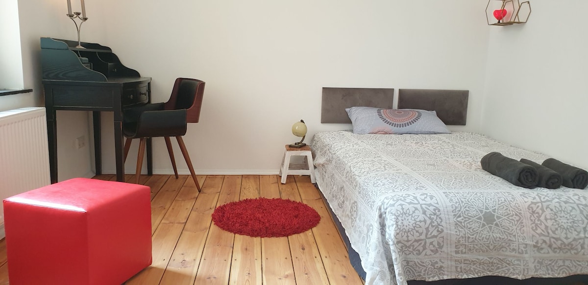 Čudovito stanovanje v 1. nadstropju hiše s teraso v Bremnu v Altfindorffu. Kopalnica s prho, mini kuhinjo in pokritim balkonom. V tej posebni nastanitvi so vse pomembne kontaktne točke na pragu: supermarket, tedenska tržnica, lekarna itd., 10 minut hoje do kongresnegain razstavnega centra, 10 minut z avtobusom do železniške postaje in 15 minut do mesta ali Weserja (bitke). Vendar pa je to mirna lokacija v bližini parka Bürgerpark in Torfkanal. Veliko dejavnosti in restavracij na pragu.