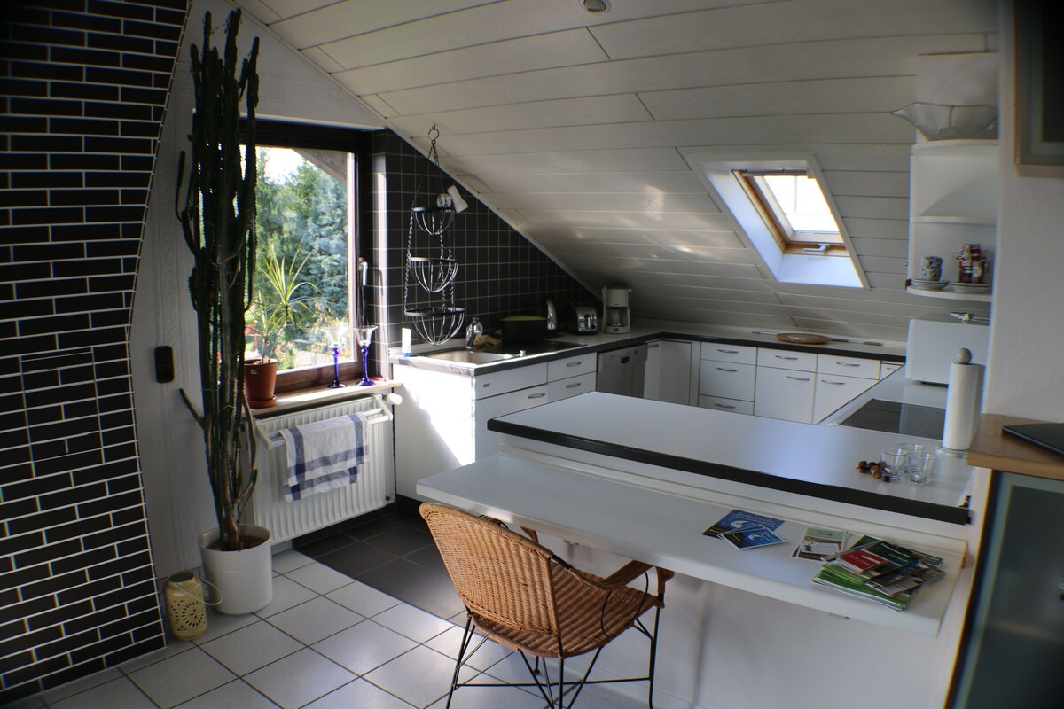 Naše na novo prenovljeno, zelo razkošno stanovanje v mansardi se nahaja v središču čudovite stare vinske kleti v osrčju Rüdesheima. Vse znamenitosti so tik za vogalom. V samo nekaj minutah lahko pridete do glavnih znamenitosti, kot so postaja žičnice, slavni »Drosselgasse«, ali pa se odpravite na pohod do spomenika Niederwald. Celo stanovanje, ki se nahaja v središču mesta, nudi zasebnost in mir. Vse, kar potrebujete za sproščujoče bivanje v Rüdesheimu.
