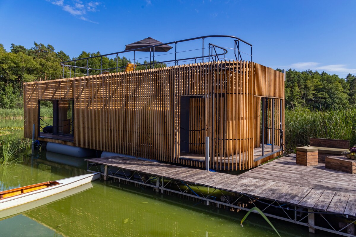 Vodno skrivališče se nahaja v gosto gozdnati in čudoviti naravni regiji. Delo poljskega arhitekta je bilo izumljeno tako, da se je ujemalo v čudovito naravno okolje in ga hkrati čim manj motilo. Zadovoljni stanovalci hiše lahko počivajo po svojih najboljših močeh. Zaradi bližine narave, vodne opreme in visokega udobja bivanja se boste želeli znova in znova vračati sem.