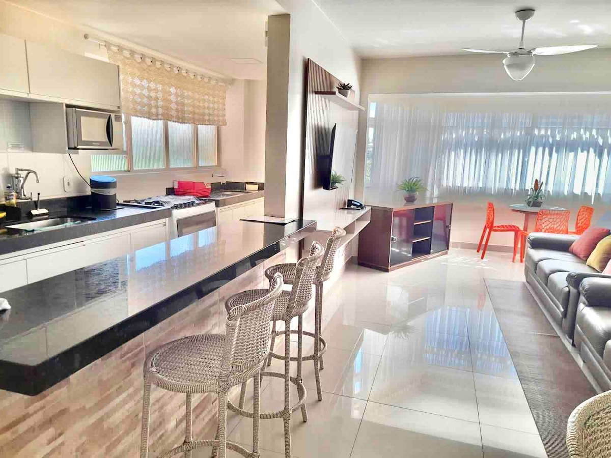 Novo in udobno stanovanje. Dovoljenih je 6 odraslih gostov (otroci do 6 let ne štejejo), ima 2 spalnici, 2 kopalnici in žar na oglje. Čudovita dekoracija, kompletni gospodinjski pripomočki, ponve (vključno s pritiskom), štedilnik s 6 usti in električno pečico. Ima airfyer, električni aparat za kavo, mikrovalovno pečico, hladilnik Inox, nove vzmetnice, blazine, 2 razdelilno klimatsko napravo, 1 mobilni ventilator, NE ZAGOTAVLJA POSTELJNEGA IN KOPALNEGA PERILA (NAVEDITE OSEBO, KI NAJEMA).