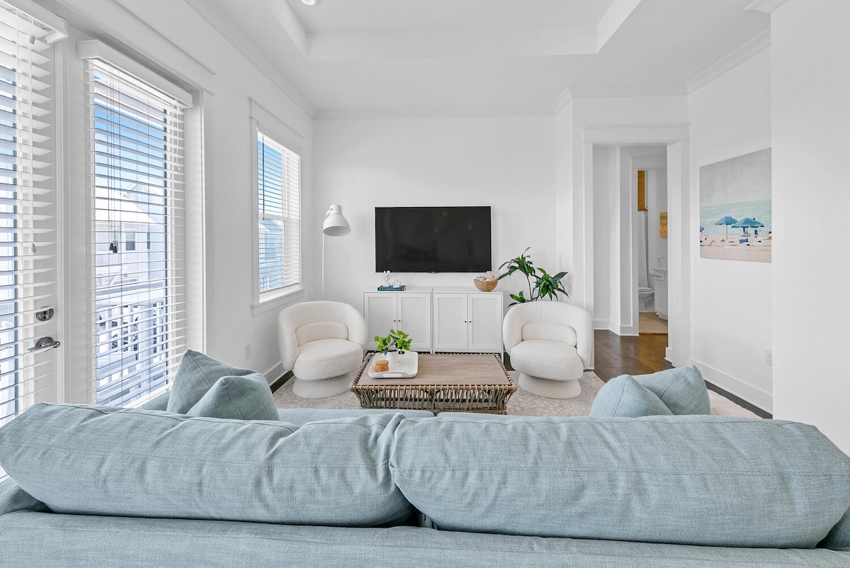 Dobrodošli v The Swell Club! Imamo vse, kar potrebujete za zabavno bivanje na 30A: velik balkon za jutranjo kavo, popolnoma opremljeno kuhinjo, dve kraljevski postelji in raztegljiv kavč, pametne televizorje, vabljiv in zračen dnevni prostor ter nov 6-sedežni voziček za golf, ki ga lahko uporabljate za prevoz po 30A! Do velikega in prijaznega letoviškega bazena se sprehodimo približno 30 sekund, do najlepših plaž v državi pa se sprehodimo do najlepših plaž v državi. Zabava, restavracije in trgovine so tik čez cesto v The Big Chill.