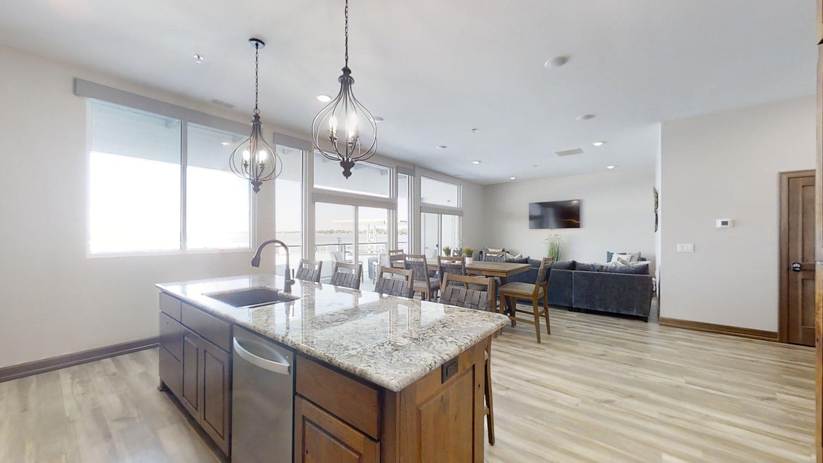 This luxury lakefront home is at the heart of Stony Point. This was specifically designed to give you the BEST sunset views on Lake Kampeska. Treating you with all the luxuries of a fully stocked kitchen, coffee bar, 5 bedrooms and king size beds, 7 bathrooms. Enjoy the expansive and private three story outdoor deck and patio area, that includes a gas fire pit, grills, under ground bar with kitchen, fridge, sink, private bathroom and an outdoor shower. Excellent for large family gatherings!