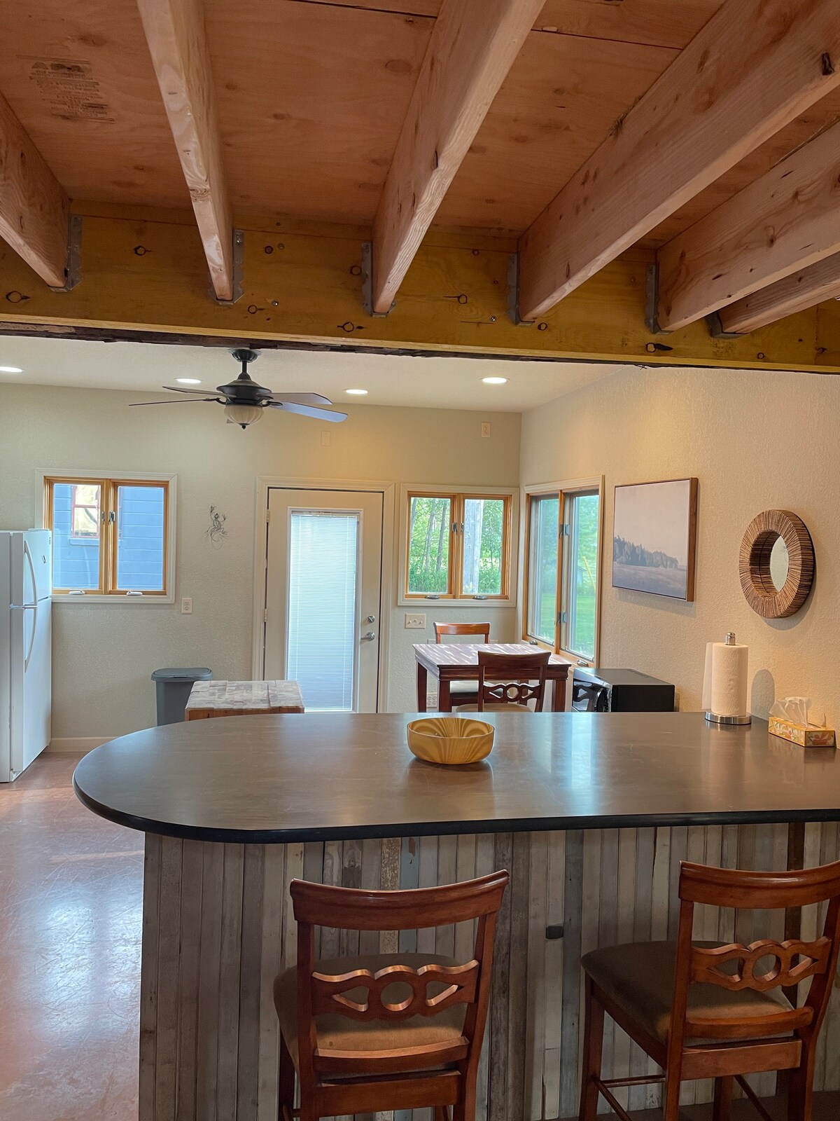 Ta prenovljena dvosobna enota se nahaja v bližini UWWW, Starin Parka in Kettle Moraine. Hišnim ljubljenčkom smo prijazni! Do športnih igrišč in UWW smo peš. Raziščite vse, kar ponuja Whitewater z našim prilagojenim vodnikom. Pohodite se po čajniku Moraine, uživajte v številnih lokalnih restavracijah in dogodkih ali pa kupite svoje srce. Smo lokalni gostitelji in si prizadevamo, da bi zagotovili izkušnjo s petimi zvezdicami. Če je vaša skupina večja od 4 let, imamo v isti stavbi še dve enoti.