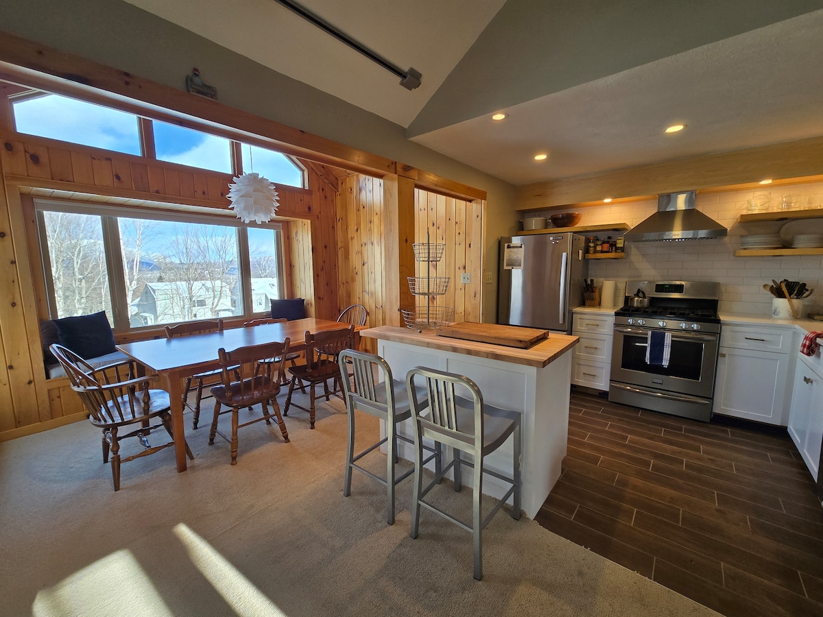 V tem sodobnem stanovanju boste blizu vsega. Na vrhu gorske ceste - sprehodite se 1 minuto do poti in smučajte do žičnice Whiffletree. Enostaven postanek za kosilo ali hitro ogrevanje. Après - sprehodite se do vasi za hrano in zabavo! 3 spalnice (2 zakonski postelji in 4 pogradi) Odprta kuhinja, dnevna soba in jedilnica s kaminom. Velika blatna soba za vso vašo opremo. Terasa s pogledom na gorovje Bigelow. Več kot 6let so mnenja s 4,9 zvezdicami, ki jih upravlja najemni agent. Zdaj rezervirajte neposredno pri lastniku, Sugarloaferju od leta 1977.