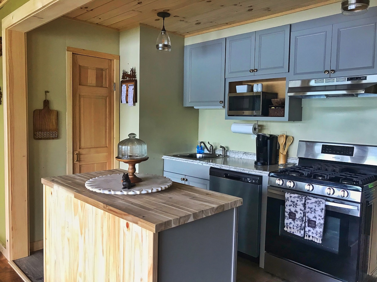 Namočite se v Adirondacks iz tega rustikalnega, na novo prenovljenega enoposteljnega stanovanja z zakonsko posteljo, polno kuhinjo in kopalnico. Začnite dan s čudovitim razgledom na sončni vzhod nad reko Moose. Sprostite enega od naših kajakov z našega zasebnega pomola, opazujte zvezde iz masažne kadi ali ob ognjišču, se zapeljite s kolesom ali pa si oglejte čudovito divje življenje in sončni zahod z vaše zasebne terase. V bližini so restavracije, nakupovanje, pohodništvo in vsa poletna zabava v Old Forgeu.