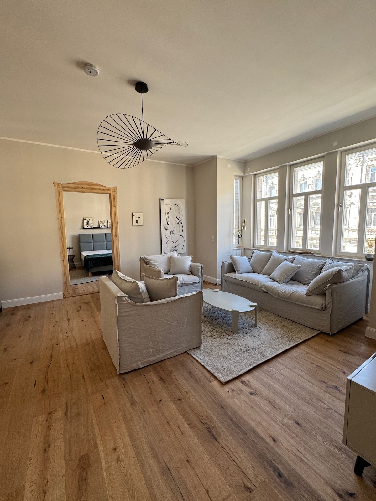 Genieße ein einzigartiges Wohnerlebnis in dieser zentral gelegenen Wohnung. Diese wunderschöne Jugendstilwohnung liegt im 2. Stock des zentral gelegenen, denkmalgeschützten EngelHauses. Fußläufig zur Fürther Innenstadt und zum Wiesengrund. Zwei Minuten zu Fuß zum Fürther Hauptbahnhof und somit in 10-15 Minuten in Nürnberg und Erlangen. Die perfekte Wohnung für Deinen Aufenthalt. Günstig gelegen für Ausflüge in die Umgebung, zum Arbeiten oder um Familie zu besuchen. Wir freuen uns auf Euch!