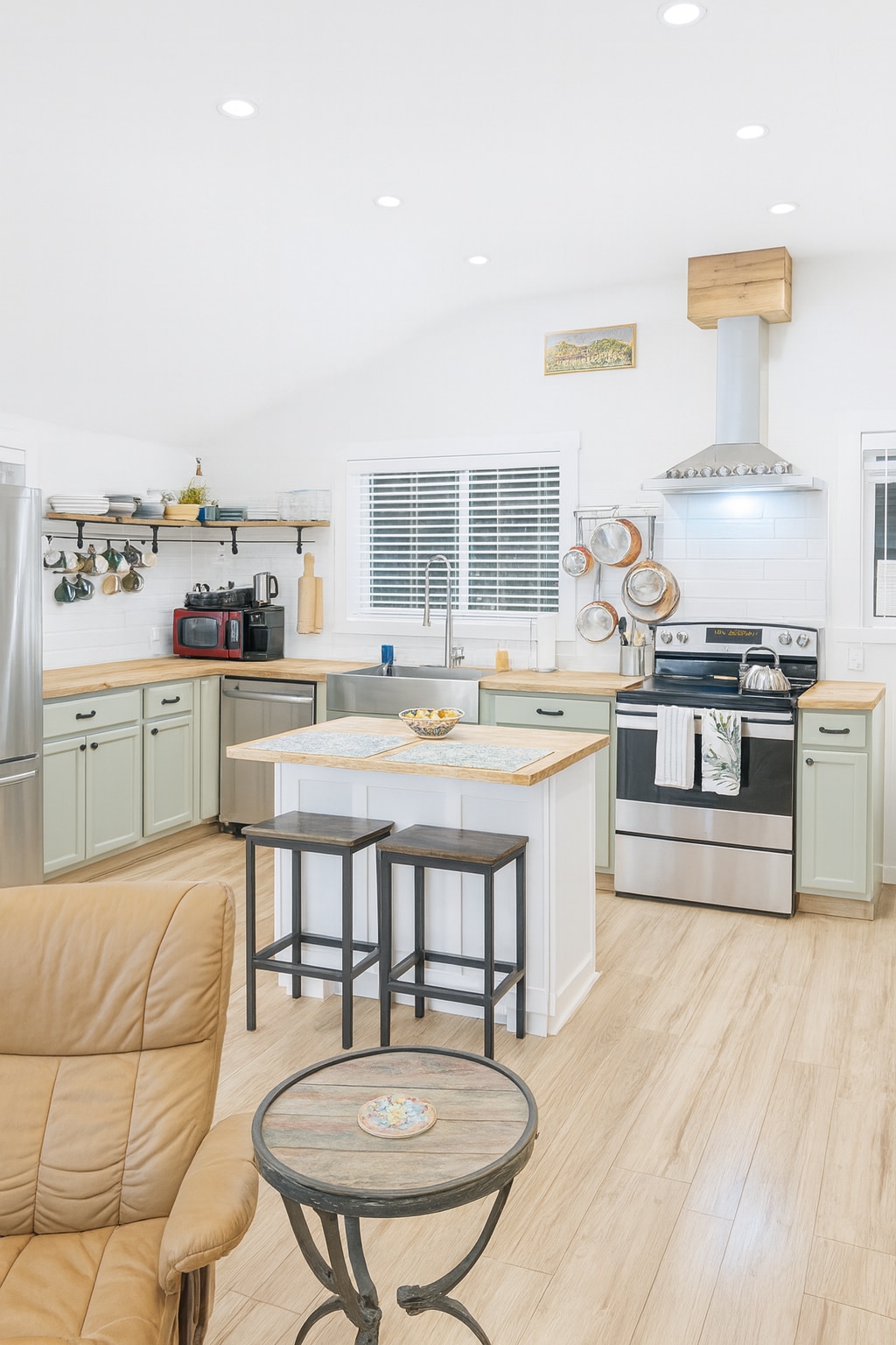 Timberland Glade is a 1420 sq ft home and has been completely remodeled. The open floor plan will allow all of the guests to connect while playing shuffleboard, board games, cooking meals or just relaxing while taking in the views. Your Electric Car can charge in garage. Note: Home has a very steep driveway. In the winter, you will need 4x4 or all-wheel drive to get to the top in snow or ice. There is parking at the bottom of the driveway with about 100 yard trek from the bottom to the top.