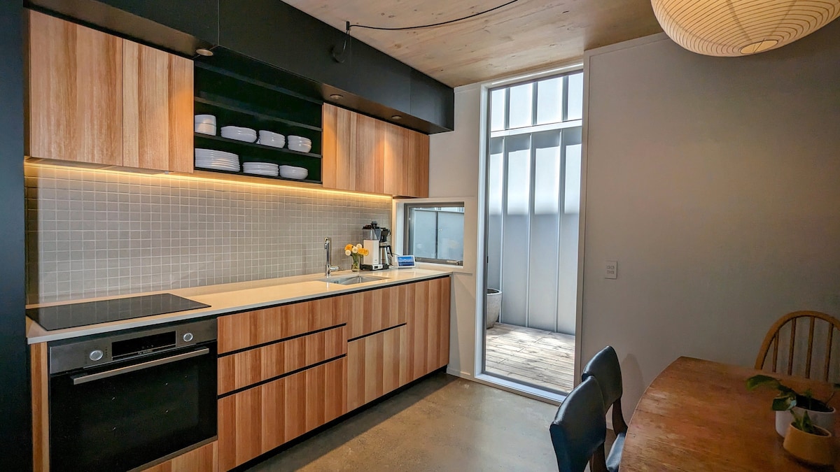 Ta topla in sončna garsonjera se nahaja v središču mesta in je zlahka dostopna peš od najboljšega, kar ponuja mesto, ter kratke vožnje do letališča in trajektov. Sem arhitektka, studio pa sem prvotno zasnovala kot delovni prostor v zadnjem delu najinega prenočišča za moža fotografa Iana. Pred kratkim smo ga spremenili v samostojno bivališče, da lahko delimo, kaj nam je všeč v mestu. Kavarne, trgovine in restavracije, sprehodi po pristanišču in hribih - vse je na dosegu roke ali pa se udobno namestite in sprostite.