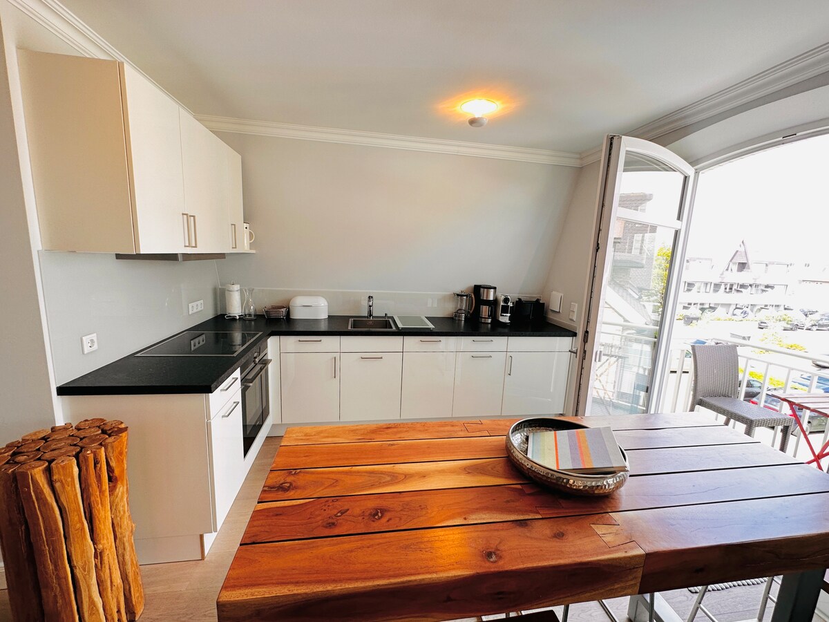 Tik ob še posebej lepem Braderuperju Heideu, stran od vrveža, vendar nedaleč od zahodne plaže, ta posebna oaza, ki se počuti dobro, leži pod slamo. Posebnost tega elegantno opremljenega galerijskega stanovanja je savna, zaradi katere je vaše bivanje slajše v vsakem letnem času. V sklopu prenočišča so na voljo ležalniki za sončne trenutke leta.