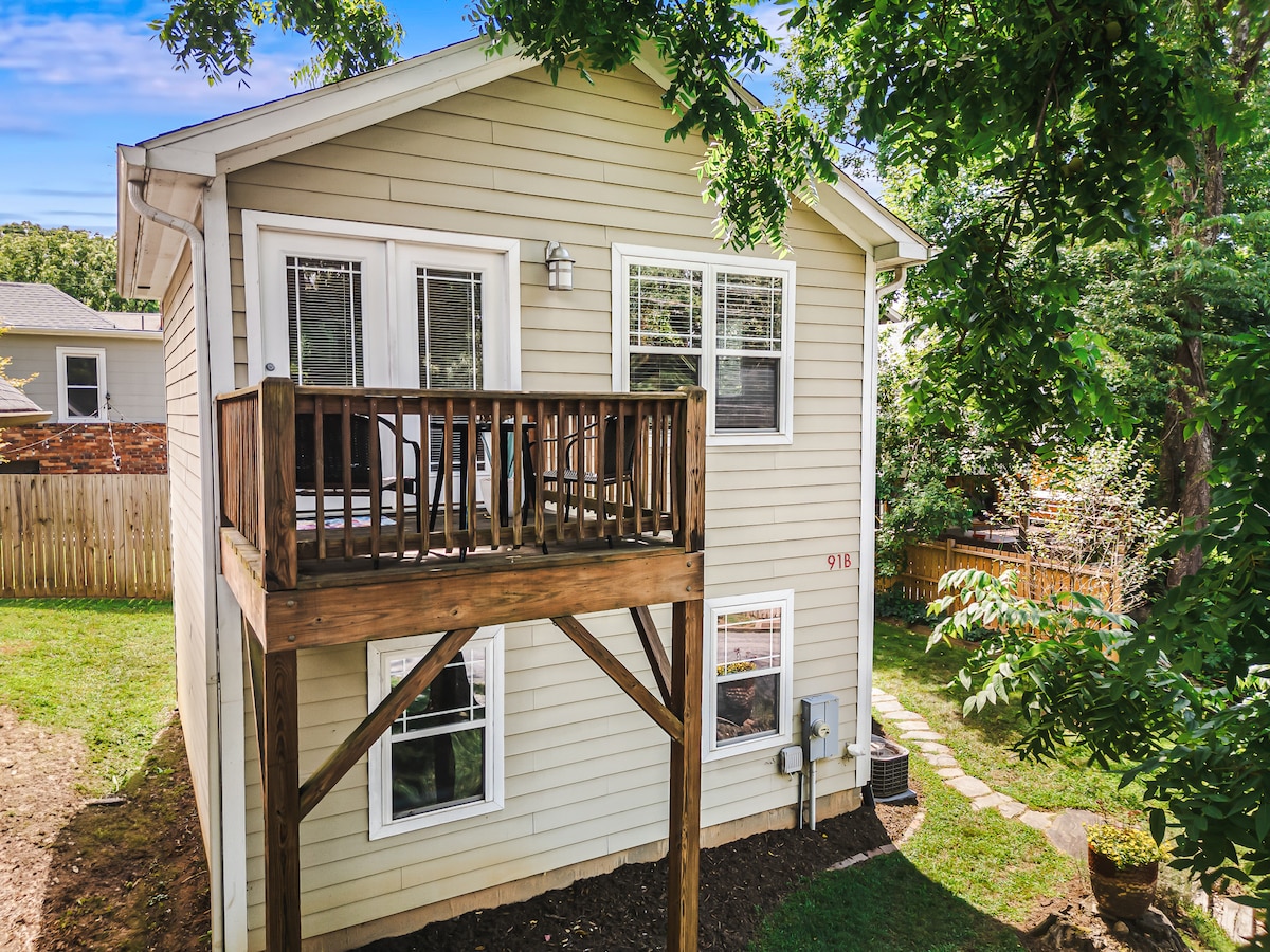 Sprostite se v The HiTop, svetlem zgornjem apartmaju v predelu West Asheville, ki je primeren za hojo, v bližini trgovin, restavracij in pivovarn Haywood Rd, v bližini okrožja River Arts District in hitrega prevoza z Uberjem do središča mesta. Uživajte v zakonski postelji, kavarni, mini hladilniku, mikrovalovni pečici, pametni TV, prostorni kopalnici in zasebni terasi na strehi. Vključuje vhod, parkirišče in shrambo za kolesa. V bližini Hayla, če potujete s prijatelji. Radi imamo otroke, vendar HiTop ni primeren za otroke in zvok potuje, zato je to najbolje za odrasle.