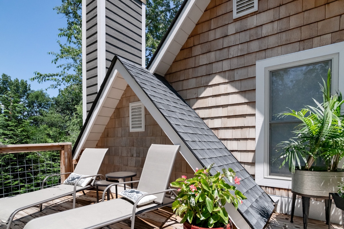 Sprostite se v The HiTop, svetlem zgornjem apartmaju v predelu West Asheville, ki je primeren za hojo, v bližini trgovin, restavracij in pivovarn Haywood Rd, v bližini okrožja River Arts District in hitrega prevoza z Uberjem do središča mesta. Uživajte v zakonski postelji, kavarni, mini hladilniku, mikrovalovni pečici, pametni TV, prostorni kopalnici in zasebni terasi na strehi. Vključuje vhod, parkirišče in shrambo za kolesa. V bližini Hayla, če potujete s prijatelji. Radi imamo otroke, vendar HiTop ni primeren za otroke in zvok potuje, zato je to najbolje za odrasle.